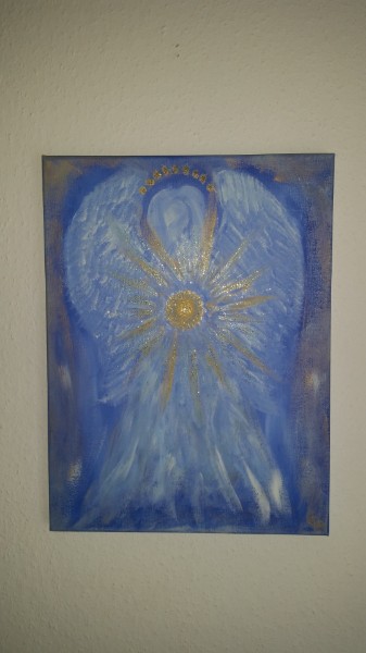 Engel mit gold auf blau / Acrylfarbe auf Leinwand / 40 x 60