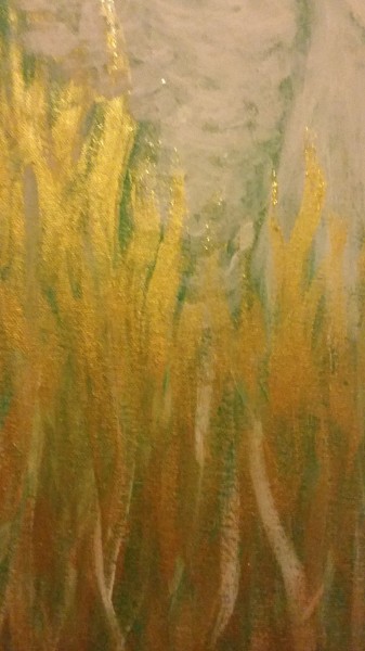 Engel weiß mit gold auf grün / Acryl auf Leinwand / 50 x 70 cm